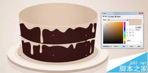 8、开始绘制蛋糕,用贝塞尔工具绘制下图的形状填充颜色,如图