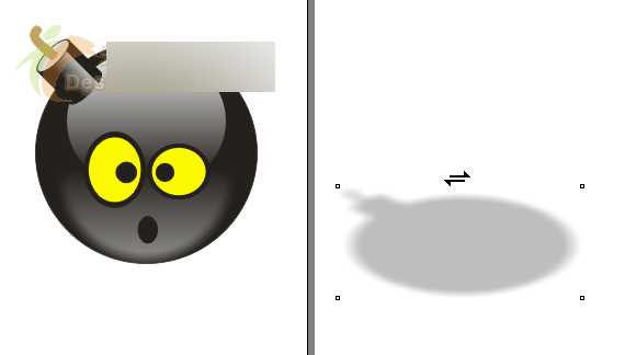 刚才在画布外面画的圆形已经没用了,可以按 "Delete"删除。 对于阴影,我们使用挑选工具再次变形,如图所示: