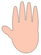 手掌的主要部分已经完成了,不过我们还不能就这样把它放下。还有一点工作要做。首先是掌心,需要添加掌纹,选择贝兹工具,如图,画上两条曲线,这样,手掌的厚度就有了(图32)。手背部分需要增加的是指甲,用椭圆工具画一个圆形,填充任意你喜欢的颜色,去除轮廓线,再复制几个,缩小后放置到对应位置上就可以了(图33)。不过,要注重不要让掌纹和指甲同时出现在一个手掌上。这虽然是句废话,但有时的确会出现这样的疏忽。