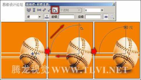 “角度尺工具”按钮,在蛋壳的中心部位单击鼠标,确定角度中心点,接着水平移动鼠标至球体的左端并单击,然后再向球体的顶端移动鼠标,在移动的过程中会看到一条弧线随着拖动做出变化,在合适的位置处单击,这样就建立了一条角度尺度线,如图3-74所示。