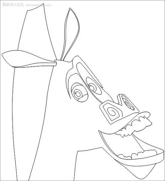 结合【椭圆工具】与【贝塞尔工具】绘制斑马的眼睛、额头纹理及鼻孔。