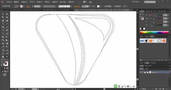 4、接着,我们再画出另外一个切割成三大块的三角形的形状路径,在切割线周围画出高光与暗光的路径结构。