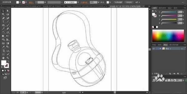 1、先用钢笔画出水壶的主体,水壶正面的光线变化,背带与水壶正面捆绑带的细节元素路径。