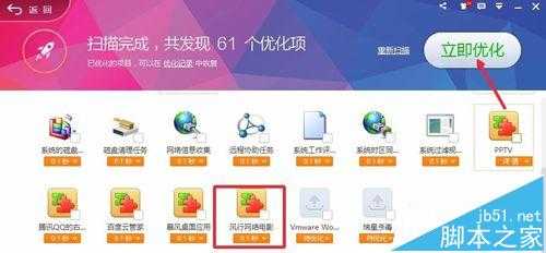 3、这时候我们这里点击开始扫描,对系统进行优化。结束后点击立即优化。