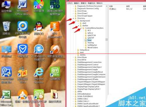 3、打开注册表后,依次找到注册表:HKEY_CLASSES_ROOT/Directory/Background/shellex/ContextMenuHandlers