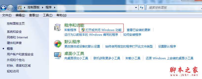 一、从控制面板打开程序,然后找到打开或关闭功能。
