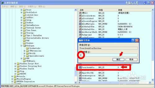 HKEY_LOCAL_MACHINE\SOFTWARE\Microsoft\Windows NT\CurrentVersion\Winlogon 将右边的键值:PowerdownAfterShutdown 改为1(双击此键值,将其中的数值数据改为1)刷新一下(F5键)设置好的注册表可生效。