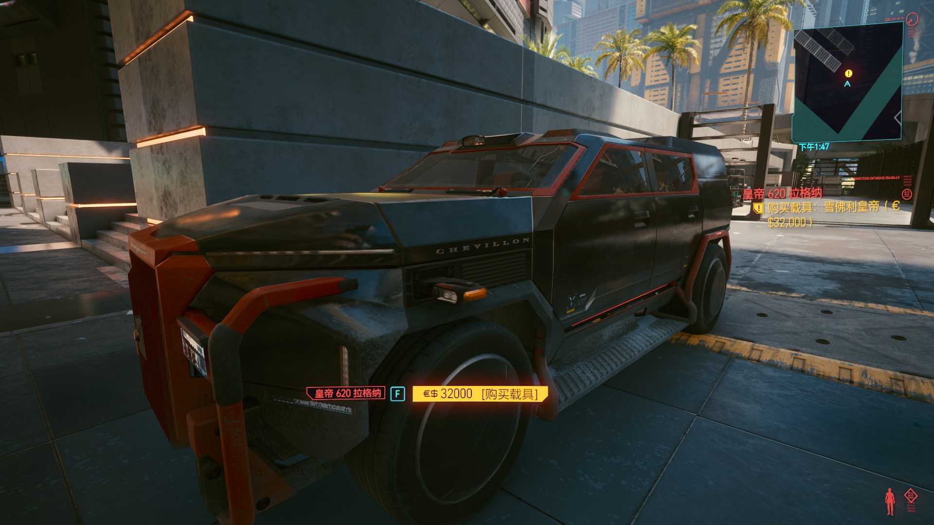 《赛博朋克2077》中的皇帝 620 拉格纳是游戏里外形非常霸道的一辆越野车,看起来就非常的酷炫,而想要获得这辆皇帝 620 拉格纳首先需要把街头声望刷到12级,然后去市政中心的中间人那里就能花32000买到了。