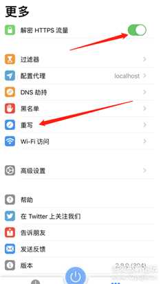 开启“解密HTTPS流量”,这里需要安装和信任证书,按提示操作即可,打开“重写”功能。
