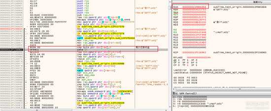 这里rax指向的就是全局控制是否注册字段的内存地址。这里和0比较了一下之后设置了ZF标志位。那就很简单了,直接操作这两句强制赋值rax指向地址的值为1即可。