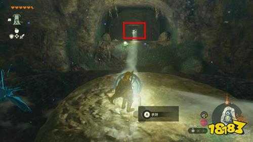 2.来到空岛上后我们可以看到有一个被灯光照射的洞窟,此时还无法进入其中但可以先使用爆炸道具破坏前方挡路的岩石。