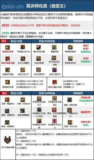【配装特点】从强度方面考虑仅在出现野生45特化自定义情况下才会使用的配装,围绕45卡洛技能特化展开,玩法方面与常规有很大不同,长线作战下表现还行。