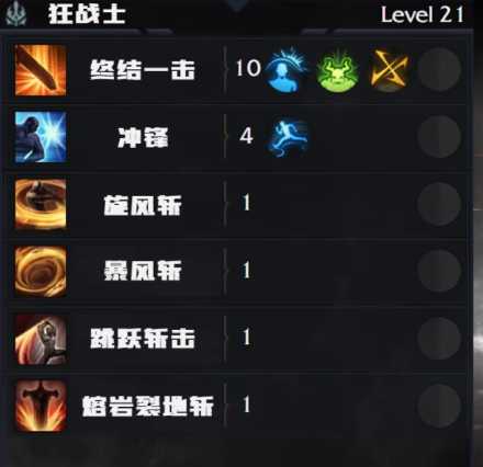 终结一击7点、冲锋4点、旋风斩1点、暴风斩7点