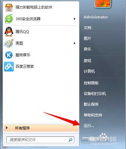 打开电脑“开始”菜单,找到【运行】选项,点击打开