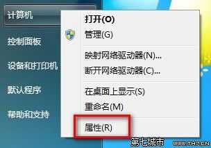 1,开始菜单右键点击“计算机”点击“属性”。