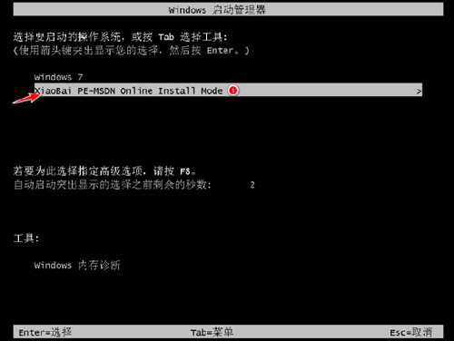 5、重启系统后,选择xiaobai-pe系统进入。