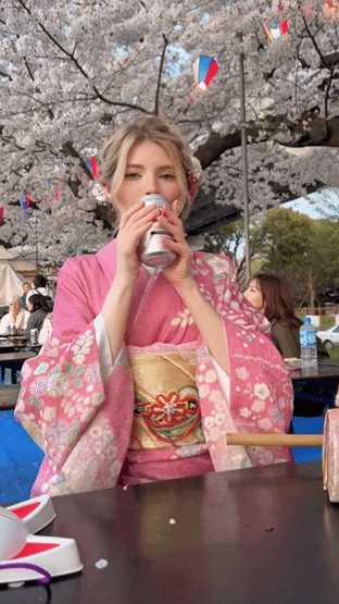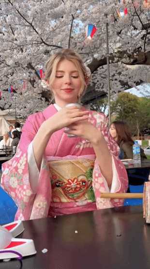 艾什莉体模新美照:外出欣赏樱花 喝啤酒