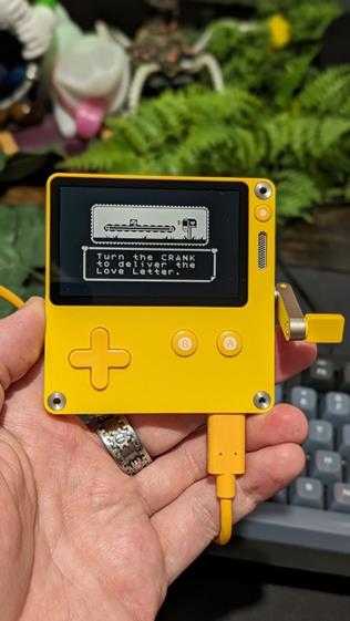 据其分享,他为自己的女友制作了一款名为《情书》的小游戏来帮会组自己传递爱意:“它最初是一系列简单的平台关卡。但经过一些游戏测试后,我决定转向更高分的街机体验。”据介绍,游戏的关卡由四个信箱组成,信箱上的管子会将字母投放到信箱上。玩家必须使用十字键选择正确的信箱,信箱上的字母由26个字母中的一个表示,然后使用游戏机右侧的曲柄将字母送到信箱上。最终,她的女友在打通关卡后收到了情书——“你愿意嫁给我吗?”