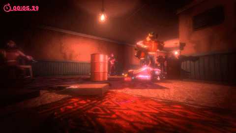 问题也恰恰出现在这里,除了极个别几个关卡真的会爽到或是感觉有意思以外,我在大多数关卡的游玩过程中没获得太多情绪价值的反馈,基本都是“踹门—杀敌—到终点”这么一套流程下来,非常平静。并非是在指责关卡设计很差,毕竟在玩家反复背板、琢磨打法后还是可以研究出一套又一套行云流水的通关打法来获得更多“养成系”的爽感,而是关卡的设计有些平庸。作为一款将黑色幽默和无厘头恶趣味拉满的游戏,在游玩过程中却很难体验到令人感到惊喜或是跳脱的内容,着实让人感到有些割裂。