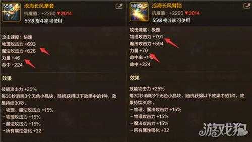 “沧海拳套”基础属性为+46力量、+693物攻。