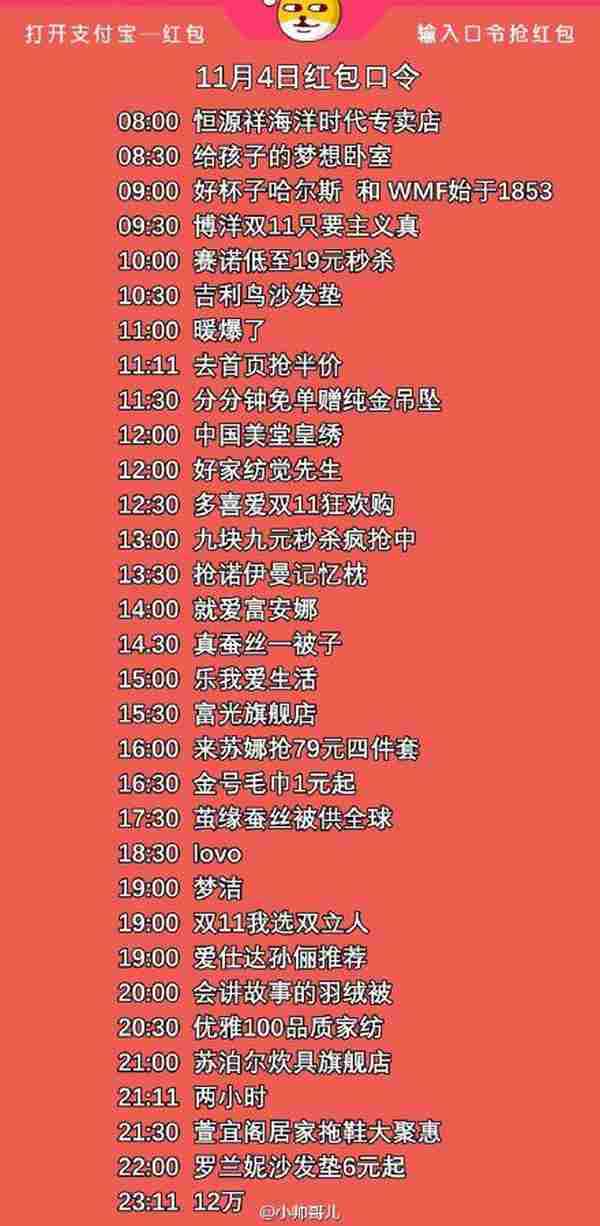 双十一这个线上的欢庆日子将要来临,各大商家也已经开始预热了,支付宝红包也将在线推出了,下面小编就收集支付宝红包口令,2015年红包口令的最新消息。